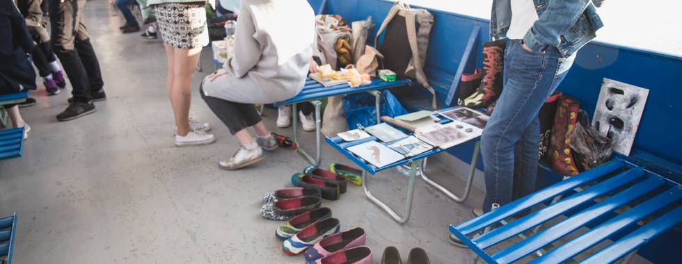 Подготовка к мероприятию на пароме началась днем на центральной площади Костромы. Художники APXIV'а изучали местный контекст, покупали произведения костромских художников и ремесленников, а также создавали произведения искусства на рынке, который проводился в рамках мероприятия в рамках Фестиваля «КосМост». Художникам APXIV'а была предоставлена одна из рыночных палаток как место для поделок. Художники и горожане красили резиновые сапоги, которые были найдены в бывшем научно-исследовательском институте легкой промышленности, одной из главных отраслей промышленности города в прошлом. Паром, как пространство событий, определил путь происходящего события. Корабль представляет собой символ путешествия в неизвестное, место без положения, где движение воды определяет правила. Таким образом, основой иммерсивной прогулки стало прямое и открытое взаимодействие художников с жителями и гостями города, импровизация и коллективные действия. Первая часть иммерсивной прогулки была посвящена обмену произведениями искусства, купленными ранее на центральной площади, за рассказы пассажиров парома о Костроме и один Полароидный портрет рассказчика.